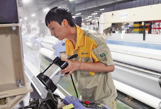 张春涛是织造24车间的调试班长,从事织造机器的维修调试工作。张春涛坦言:“织造机器能否顺利运行,关乎整个车间的生产效率和产品品质。我这份工作看似普通,但对员工的操作技能要求很高。”