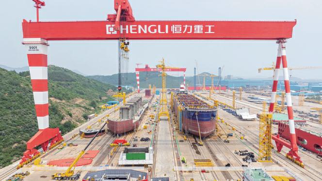 此次获得表扬信,是恒力造船对“恒力品质”不懈追求的最好证明。未来,恒力造船将凭借先进的管理理念和精益求精的工作态度,在国际造船领域打响“恒力重工”品牌。(曲元杰)图为恒力重工船台造船现场。(恒力集团版权所有,如需转载请注明出处)