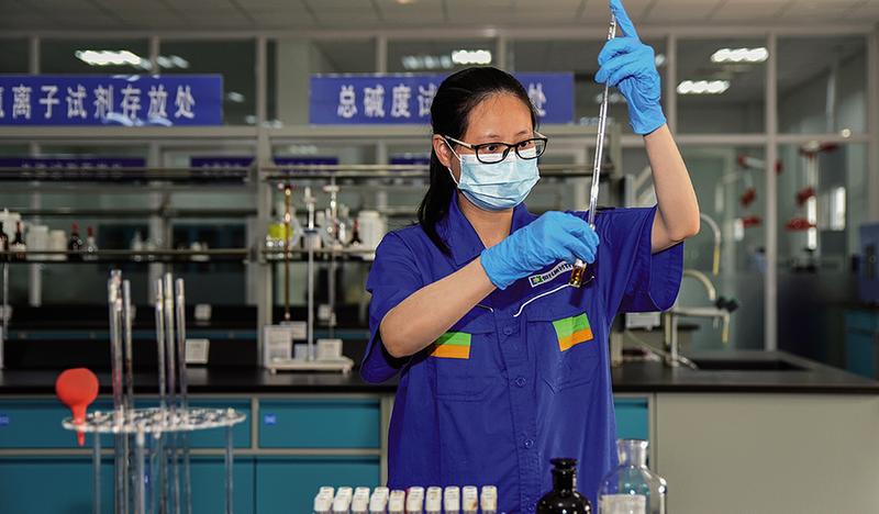 图为甘正琴正在进行水质分析。(恒力集团版权所有,如需转载请注明出处)