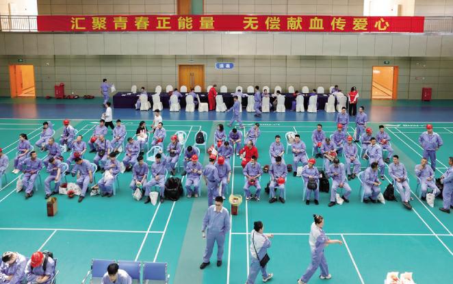 活动伊始,从生产、研发、管理等岗位赶来的干部职工们,汇集到综合楼羽毛球馆、新材料聚酯楼等三个献血点。汗珠未及擦拭,他们已投入信息登记、健康筛查、血液采集中。“老将”王绍勇已是第19次爱心挽袖,累计献血6800毫升,相当于1.5个成年人的全身血量,他道出了心声,“每位献血者都是家国情怀的践行者、生命的守护者。”新员工陈乐雨将首次献血视作入职礼,他表示,“献血既为今天的他人,也为明天的我们。”