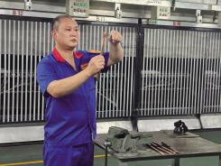 图为陈先胜正在检查铲刀打磨是否合格。(恒力集团版权所有,如需转载请注明出处)