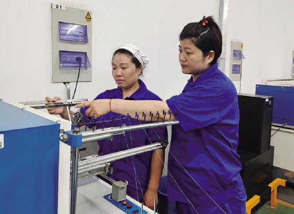 图为冷晓亭(右)在向郝赛男分享绕丝技巧。(恒力集团版权所有,如需转载请注明出处)