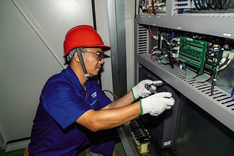 图为电仪人员在进行电源改造工作。(恒力集团版权所有,如需转载请注明出处)