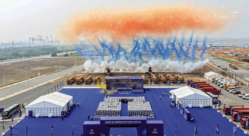 图为恒力合作创新暨海工科技产业园开工动员大会现场。