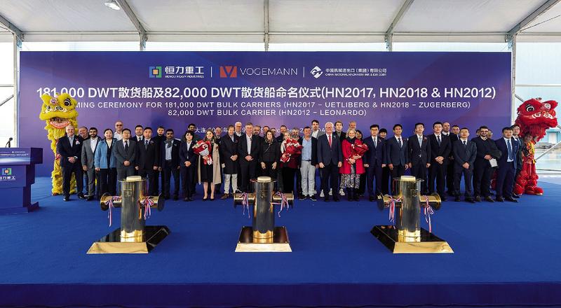 此次命名的三艘新船是恒力重工为德国Vogemann公司建造。Vogemann是欧洲知名船运企业,也是恒力重工首批海外船东和重要合作伙伴。此前,Vogemann在恒力重工已建造完工三艘8.2万载重吨散货船,船舶在投入运营过程中优势显著,各项性能指标均达到国际先进水平,获得船东致信赞扬。去年以来,Vogemann陆续在恒力重工下单增订新船,双方友好合作不断升华,结出累累硕果。