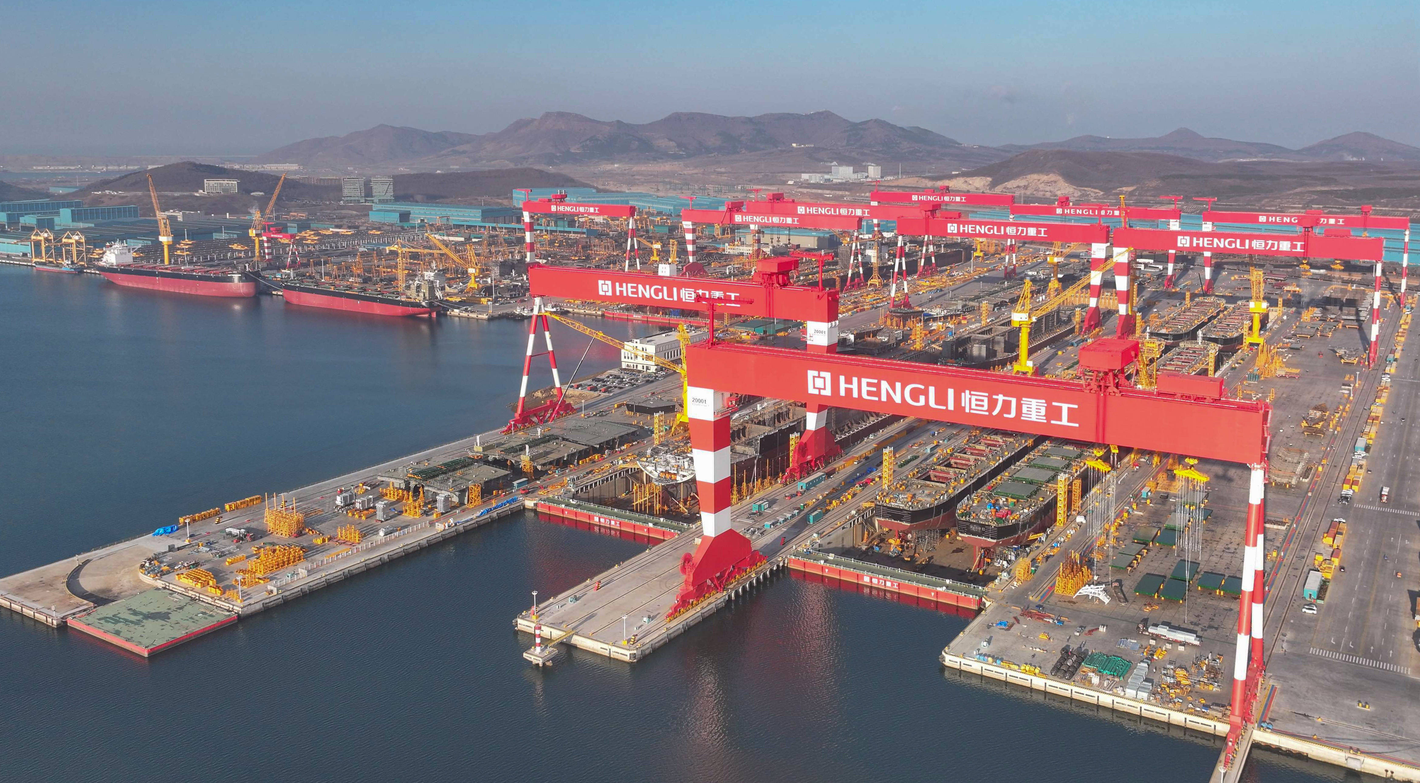 2025年,是恒力重工板块具有里程碑意义的一年,成绩耀眼、硕果累累。恒力重工成功上市,成为民营造船第一股;首制30.6万载重吨超大型油轮(VLCC)、自主生产第一台液化石油气(LPG)双燃料发动机成功交付。恒力重工与多家国际航运巨头合作,共计签约300多艘新造船订单,订单已排至2029年。