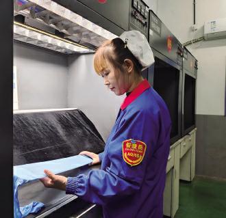 上图为姚开霞指导员工外检操作流程;