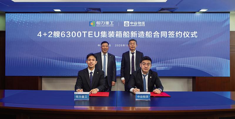 本报大连讯 1月28日,恒力重工与中谷物流达成了一项具有里程碑意义的合作,正式签约4+2艘中型集装箱船6000箱新造船项目,此次签约也成为双方首次合作。中谷物流股份有限公司董事副总经理卢长威,松发股份董事、总经理陈汉伦分别代表双方签约。中谷海运集团党委书记、董事长卢宗俊,恒力集团董事长、总裁陈建华共同见证签约。
