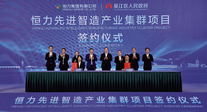 本报苏州讯 春潮涌动启新程,政企同心谋发展。2月25日,恒力先进智造产业集群项目签约仪式在吴江隆重举行。江苏省委常委、苏州市委书记范波,苏州市委常委、常务副市长、市政协副主席顾海东,吴江区委书记孙建江,恒力集团董事长、总裁陈建华,恒力集团副董事长范红卫出席仪式并见证签约。
