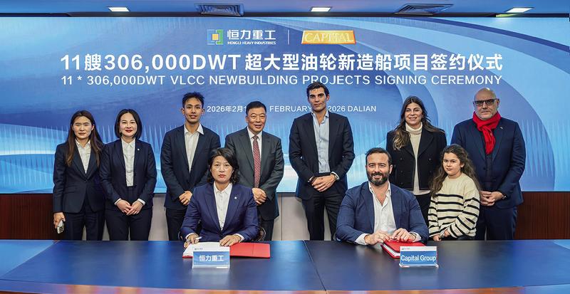 本报大连讯 新春伊始,万象更新。在“十五五”规划开局之年的喜庆氛围中,恒力重工集团为希腊航运巨头CAPITAL命名交付一艘30.6万吨级超大型油轮(VLCC),同时一举承接11艘VLCC新船订单,这一“交付+接单”的双向突破,不仅刷新了恒力重工VLCC单笔订单数量新纪录,更标志着中国民营造船力量在全球高端船舶制造领域的全面崛起。