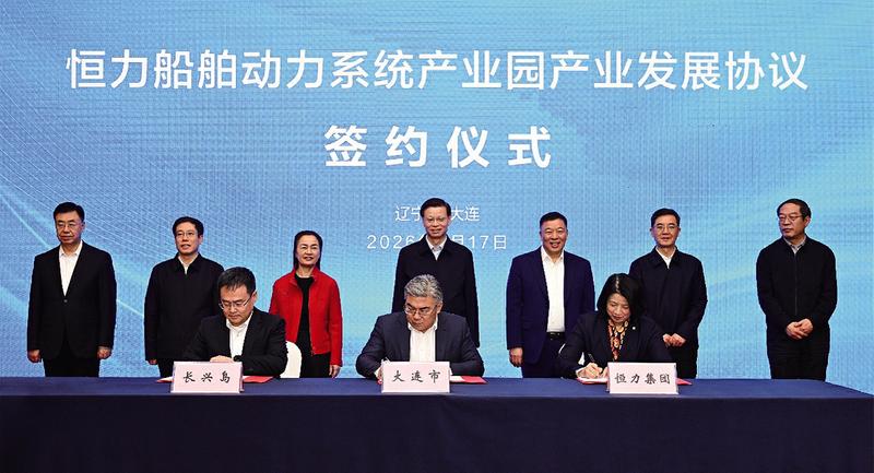 本报大连讯 3月17日,恒力集团与大连签订三项合作协议,成立大连海运有限公司,在大连长兴岛投资建设船舶动力系统产业园、聚酯新材料产业园。