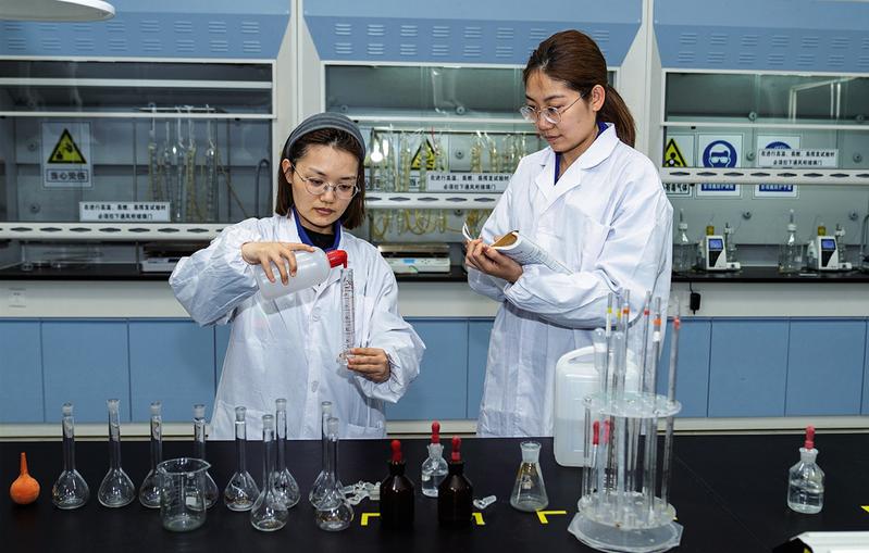 图为研发人员在做测试溶液的量取与调配。(恒力集团版权所有,如需转载请注明出处)